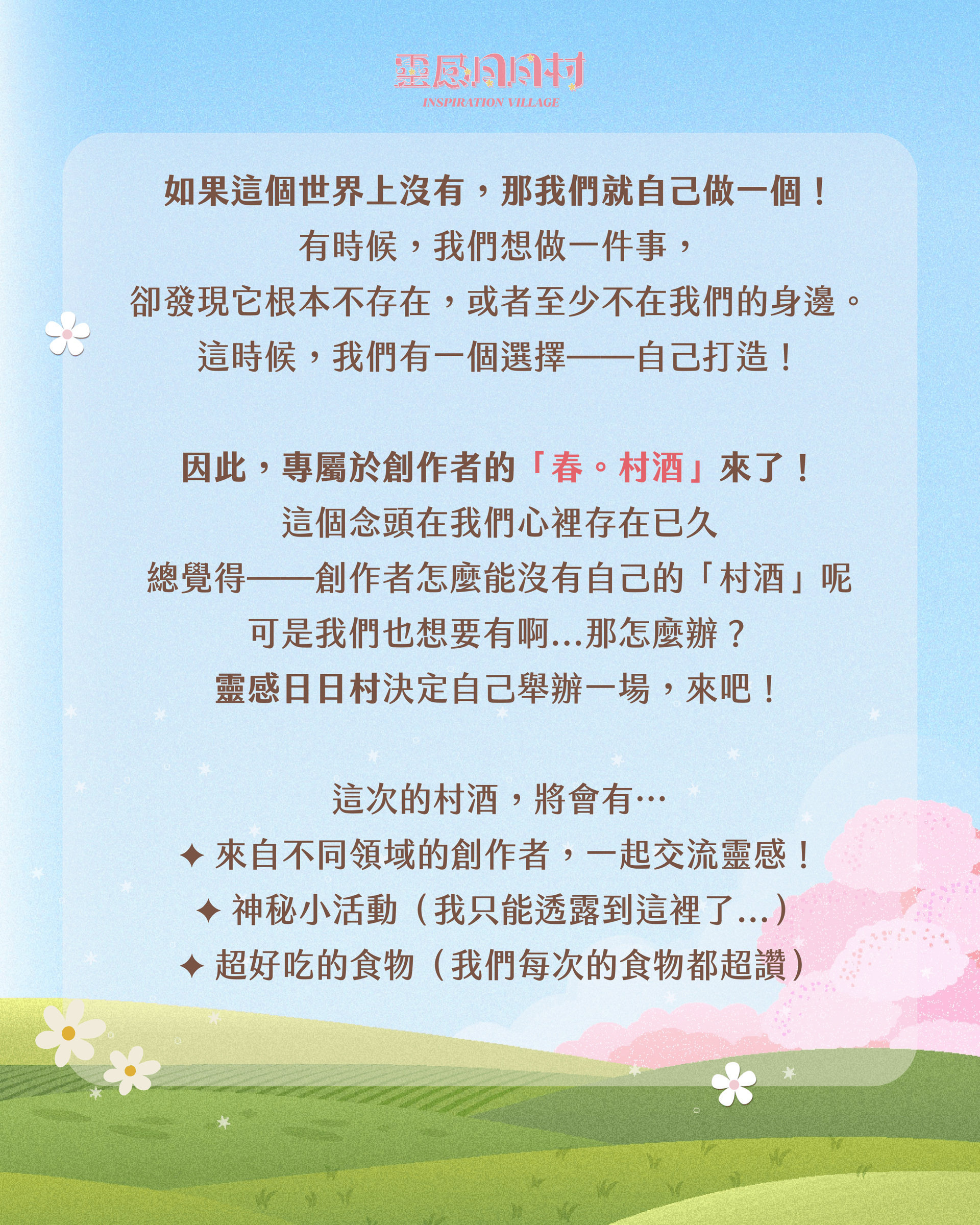 靈感日日村|春。村酒 —— 創作者線下交流聚會,活動名額限量報名中!(已結束)