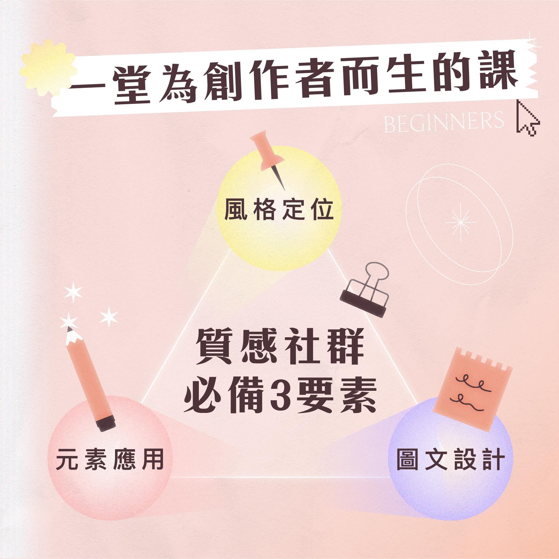 這是一堂除了創作者交流外,還有更多社群創作心法培養及實戰技巧的超級乾貨課程,零基礎輕鬆上手!「陪跑 × 作業 × 直播 × 社群」等課間、課後四圈交流一樣都不少!