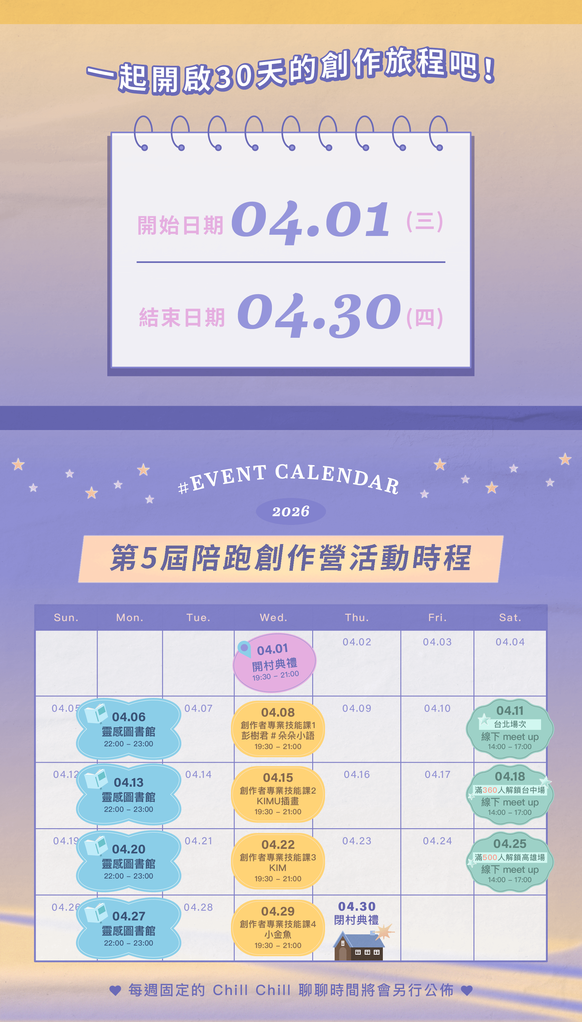 【第5屆】靈感日日村 創作者初心鎮:30天創作營——4月