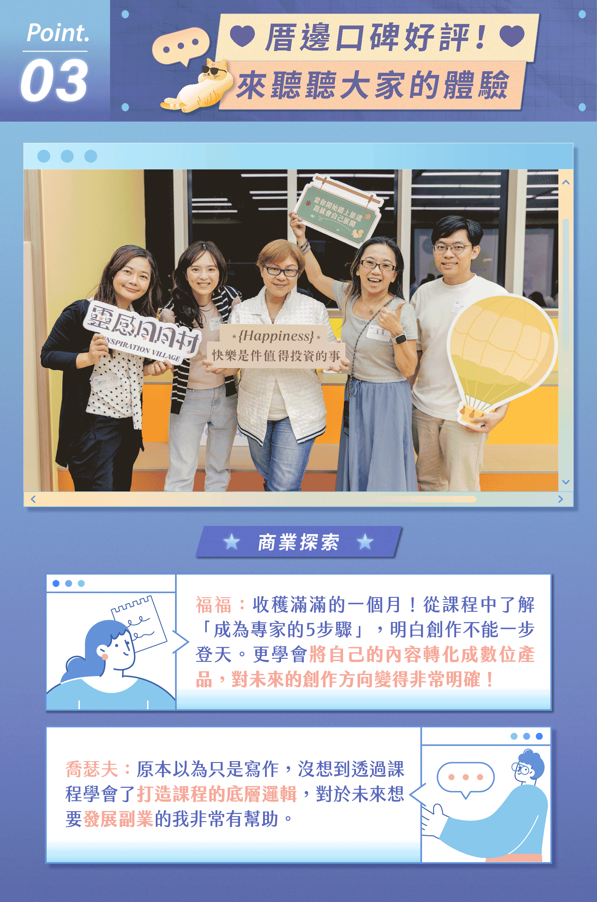 你想要成為創作者但總是半途而廢嗎?想要持續創作但常常沒靈感嗎?靈感日日村是一個專為創作者打造、為期30天的陪跑創作營,我們歡迎各領域對創作具有熱忱的你!