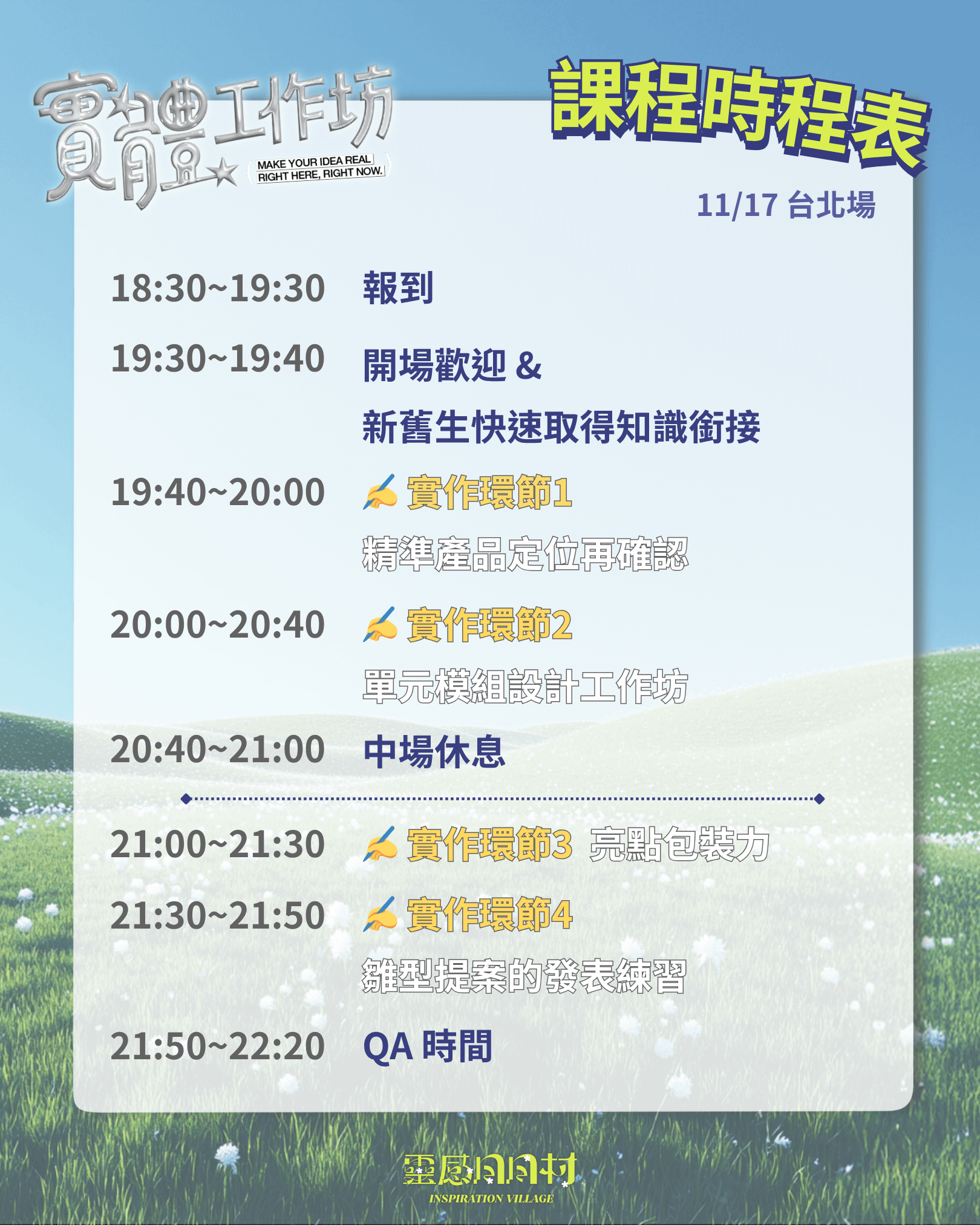 ✔️現場互動提問與個別點評,當天即帶走屬於你的課程雛形